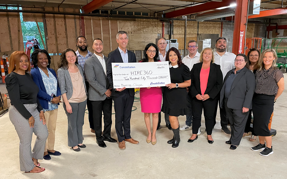 CHICAGO (July 27, 2023) — Constellation (Nasdaq: CEG), the largest producer of carbon-free energy in the U.S., is contributing $250,000 to HIRE360 as part of a program to increase employment and training opportunities in the building trades for women and people of color in the Chicago area. The partnership, an expansion of Constellation’s $1 million Powering Change workforce development initiative, will help HIRE360 launch a program to train people in historically underserved communities for family-sustaining union jobs in the building trades.